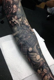 手臂亚洲风格的武士与各种花卉纹身图案