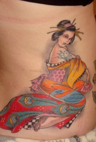 侧肋传统的盛装艺妓彩绘纹身图案