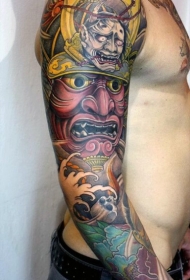 手臂亚洲风格的巨大五彩武士面具纹身图案