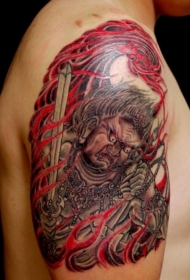 大臂亚洲各种卡通的怪物和巫婆纹身图案