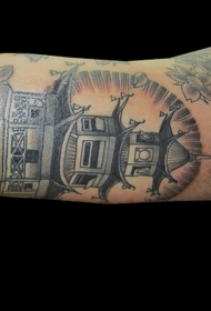 大臂幻想人类骷髅枫叶和寺庙纹身图案