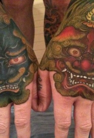 手背漂亮的五彩各种亚洲恶魔纹身图案