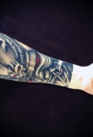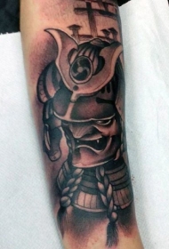 亚洲风格的彩色恶魔武士头盔小臂纹身图案