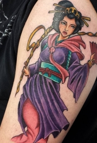 手臂准漂亮的彩色亚洲艺妓纹身图案