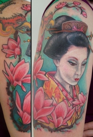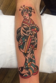 小臂有趣的亚洲艺妓穿和服纹身图案