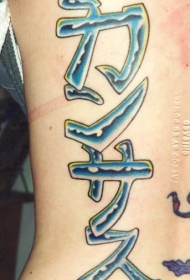 背部亚洲的象形文字彩色纹身图案
