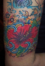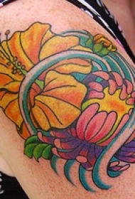 大臂丰富多彩的亚洲芙蓉花纹身图案