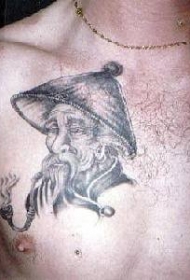 亚洲吸烟的老者肖像纹身图案