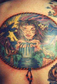亚洲风格彩色人像纹身图案