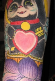 手臂彩色的招财猫莲花纹身图案