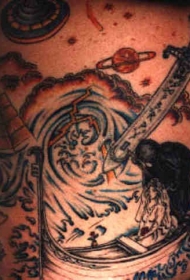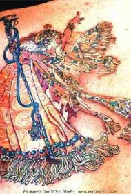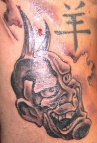 满背亚洲风格武士般若和鲤鱼彩绘纹身图案