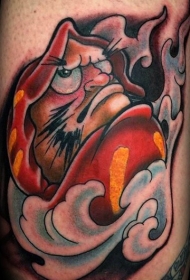 手臂色彩鲜艳的鲤鱼和达摩纹身图案