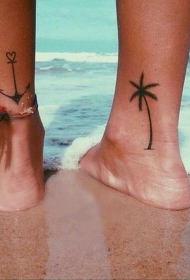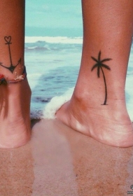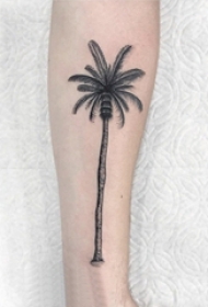 女生小腿上黑色点刺简单抽象线条植物椰树纹身图片