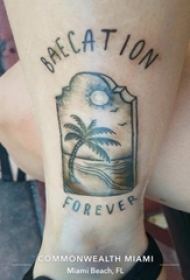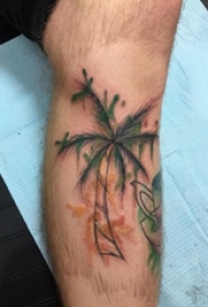 椰树纹身图 男生小腿上彩色的椰树纹身图片