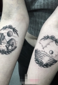 手臂黑白灰风格点刺植物素材花朵风景纹身图片