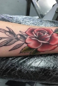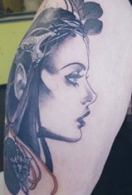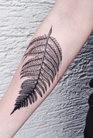 手臂上黑白灰风格点刺技巧植物素材叶子素材人物肖像纹身图片