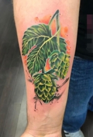 男生手臂上彩绘绿色树叶和葡萄纹身图片