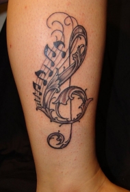 女生手腕上黑色线条创意文艺音符小图案纹身图片