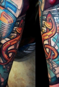 女生手腕上黑色线条唯美音符水彩泼墨纹身图片