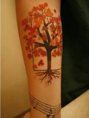 手臂好看的枫树音符纹身图案