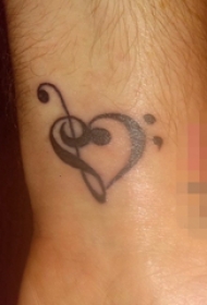 手腕黑色音符心形纹身图案