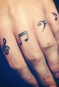 手指上的黑色音乐符号纹身图案