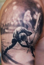 黑白音乐家人像大臂纹身图案