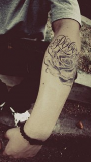 男人手臂的花体英文字母刺青