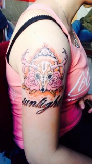 大臂上非常漂亮的藏羚羊英文纹身