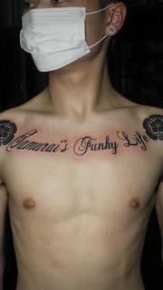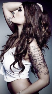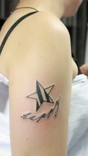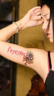 靓妹后背潮流小巧的皇冠字母纹身图案