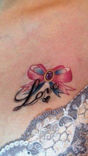 美女腿部小巧潮流的爱心翅膀纹身图案
