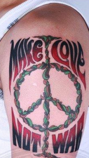 手臂经典反战符号英文纹身图案