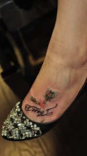 脚部的钥匙与字母纹身图案
