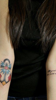 女生手臂流行唯美的船锚纹身图案