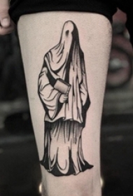 幽灵纹身图案 男生小腿上黑灰的幽灵纹身图片