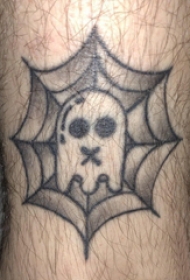 欧美小腿纹身 男生小腿上幽灵和蜘蛛网纹身图片