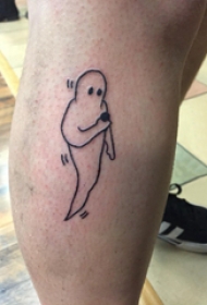 小纹身简笔画 男生小腿上黑色的幽灵纹身图片
