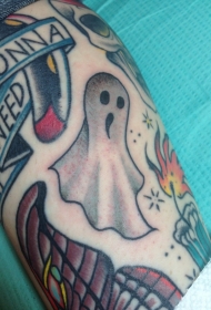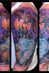 肩部彩色卡通幽灵与蝙蝠纹身图案