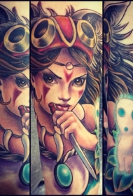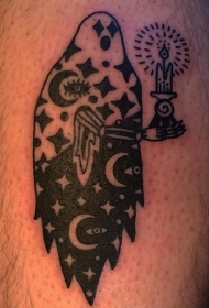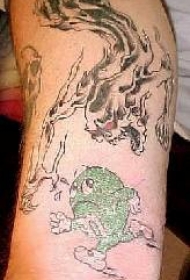 大腿old school神秘怪物和麋鹿幽灵纹身图案