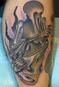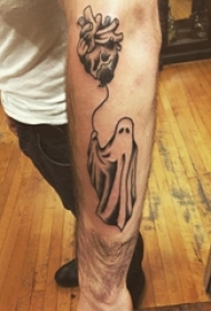 欧美小腿纹身 女生小腿上花朵和幽灵纹身图片