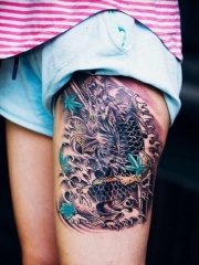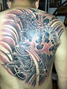 鱼跃成龙,个性鳌鱼与般若花臂纹身