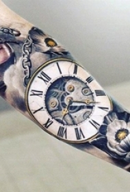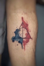 男生手臂上彩绘几何圆形和泼墨怀表纹身图片