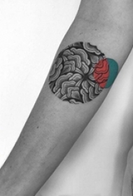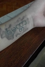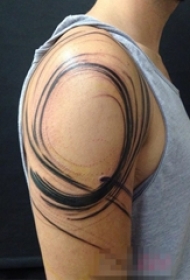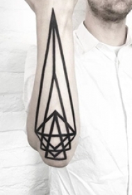 男生手臂上黑色抽象线条几何圆形纹身图片
