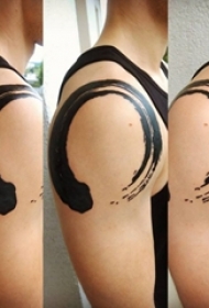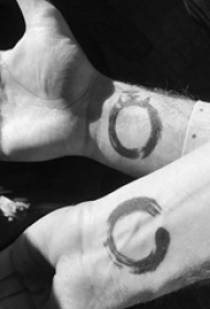 情侣手臂上黑色水墨几何线条圆形纹身图片