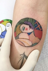 女生手臂上彩绘几何圆形线条人物纹身图片