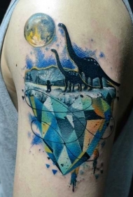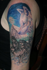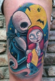 腿部漫画风格的彩色圣诞节主题纹身图案