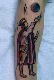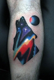 手臂彩色狼与月亮与夜空纹身