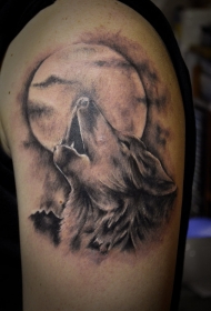 肩部棕色保鲁夫狼和月亮纹身图案