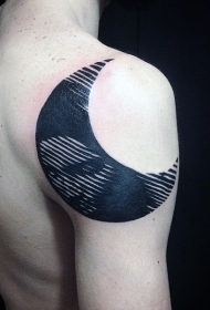 男性肩部黑色月亮纹身图案