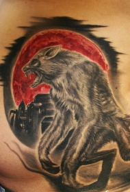 腰侧彩色新的学校风格的狼人纹身